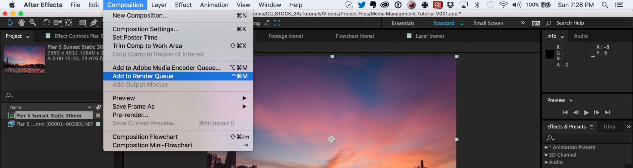 Once you have finished working with your files in LR Timelapse and Lightroom, you can then jump into After Effects. The biggest perks of using After Effects is its ability to composite / work with your images as well as batch export multiple timelapses in a variety of formats.